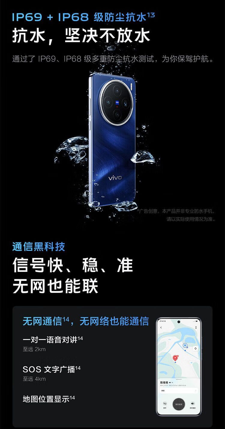 vivoX100蔡司镜头IP68级防水百倍变焦 蓝晶X天玑9300高性能游戏智能机 【Vivo X100】星迹蓝 16GB+256GB 单机+【120W快充】+店铺质保1年