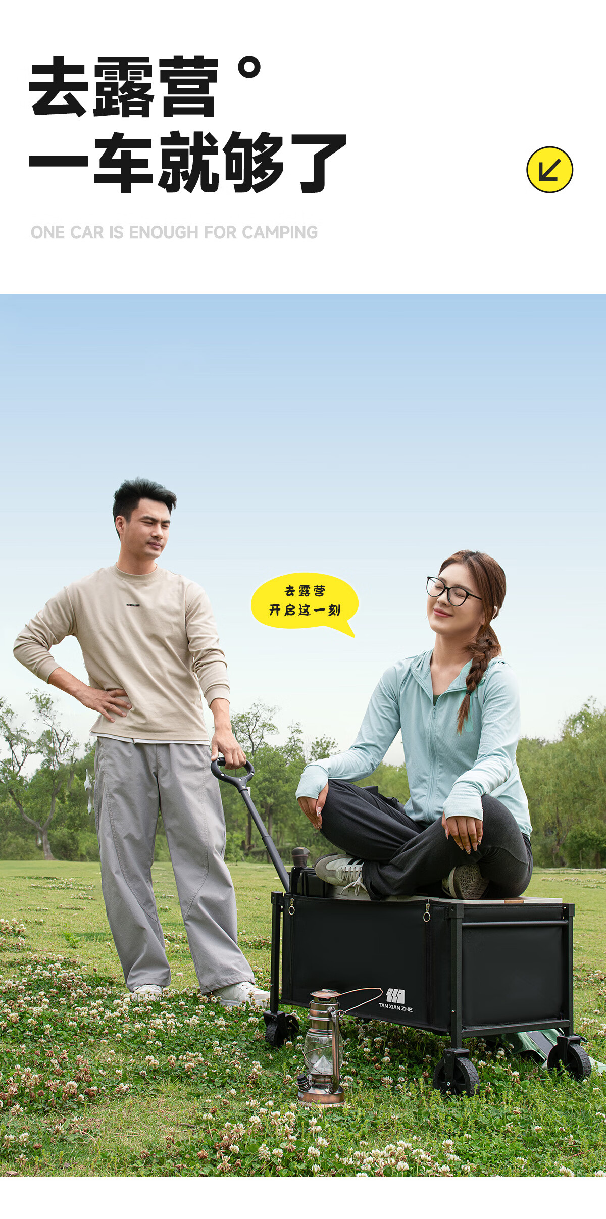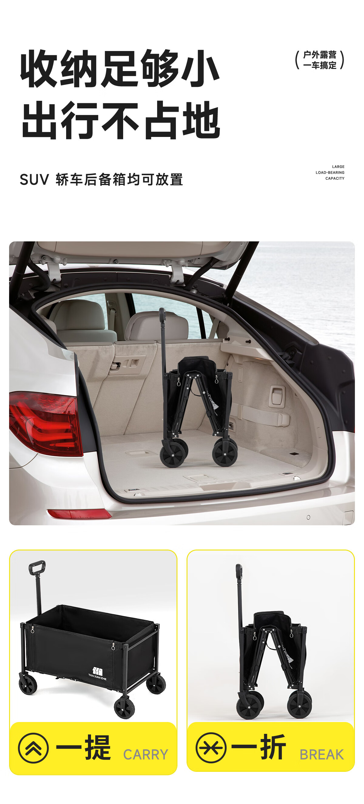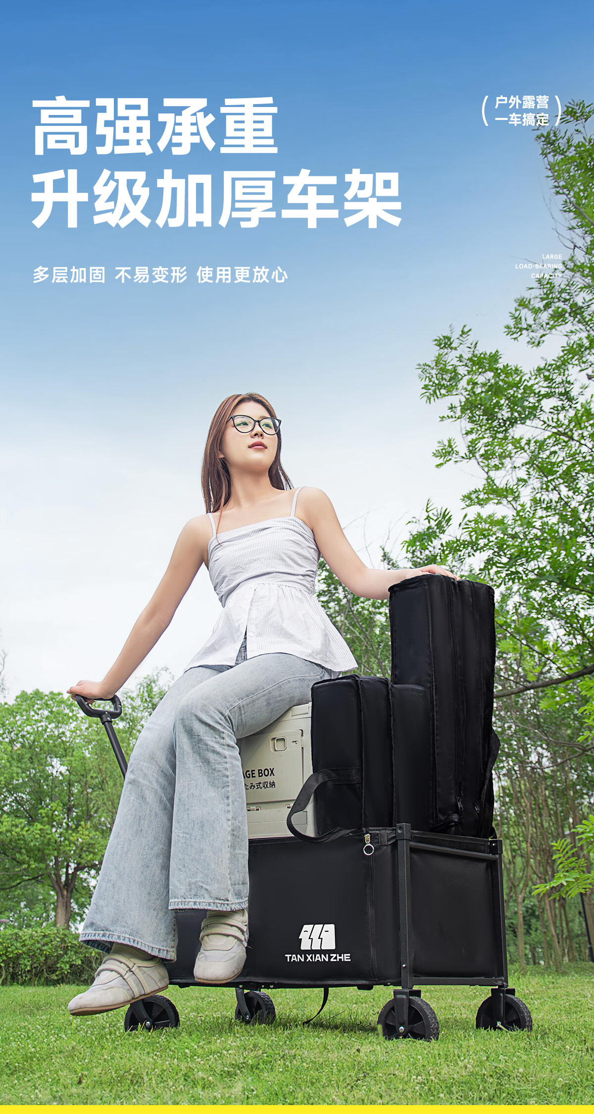 探险者户外露营车折叠推车买菜家用小车轻便快递车小拖车手推车野餐推车 【无框架】侧开营地车-曜石黑