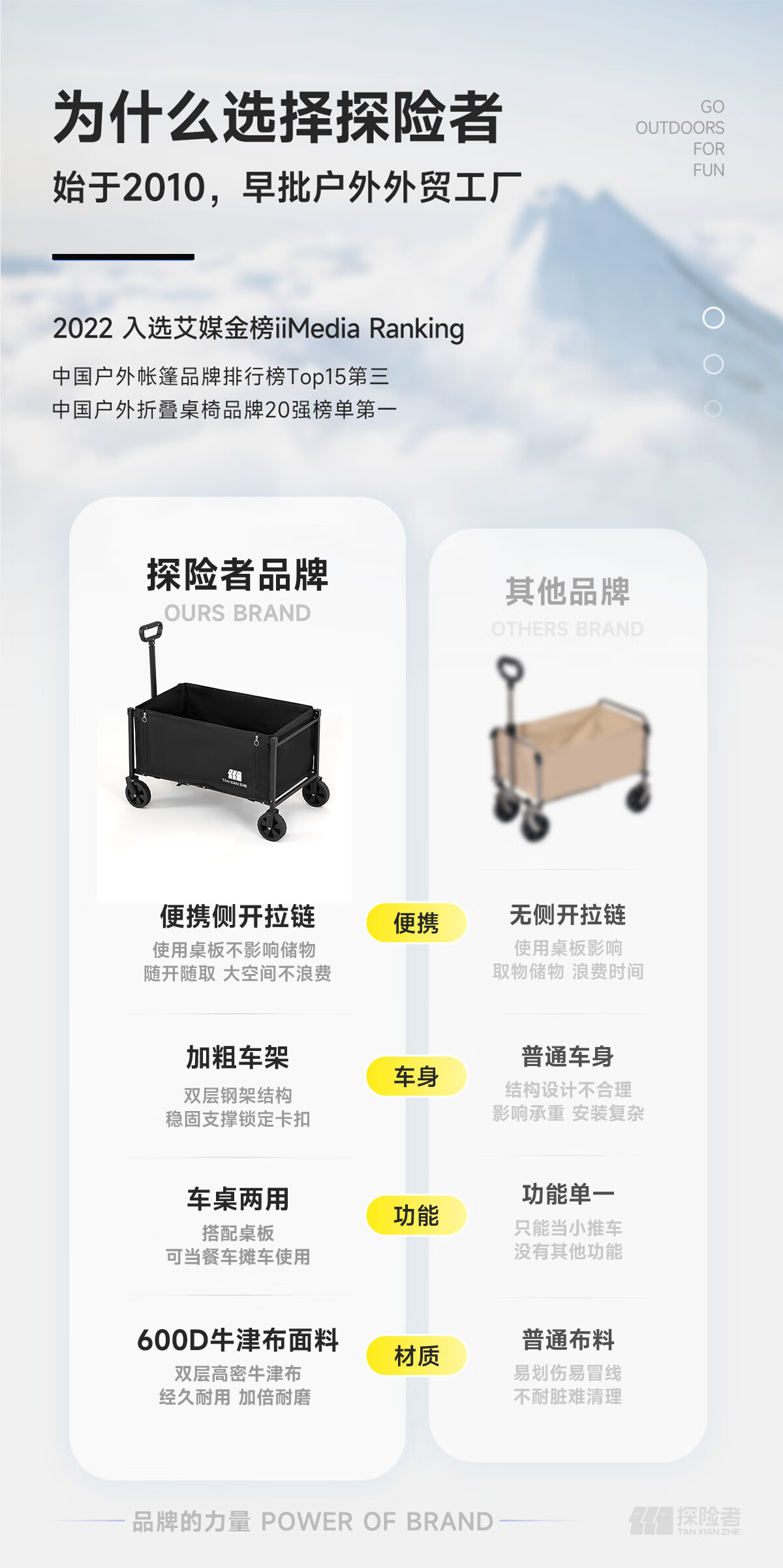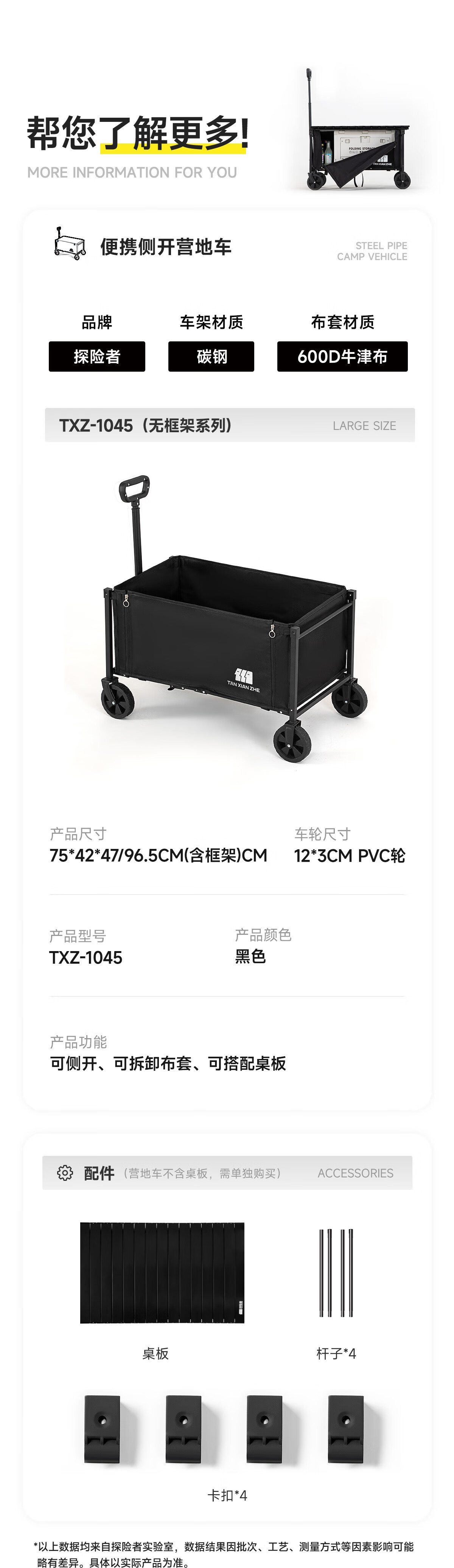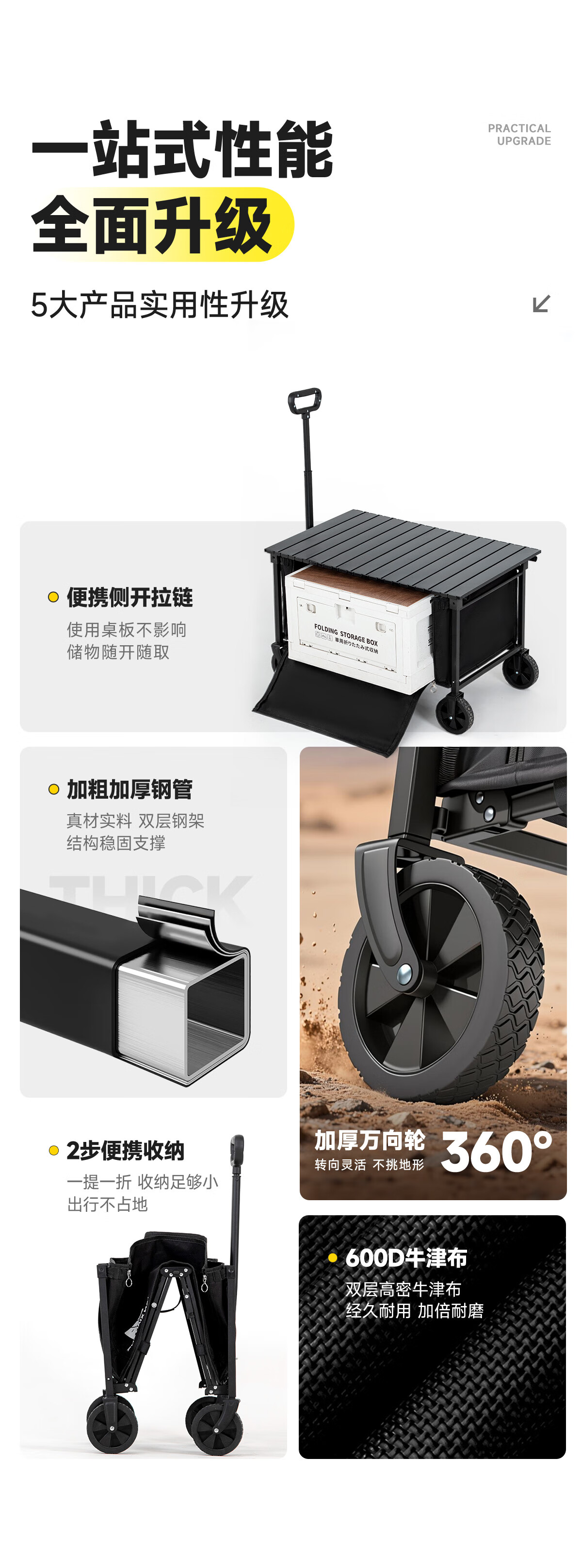 探险者户外露营车折叠推车买菜家用小车轻便快递车小拖车手推车野餐推车 【无框架】侧开营地车-曜石黑