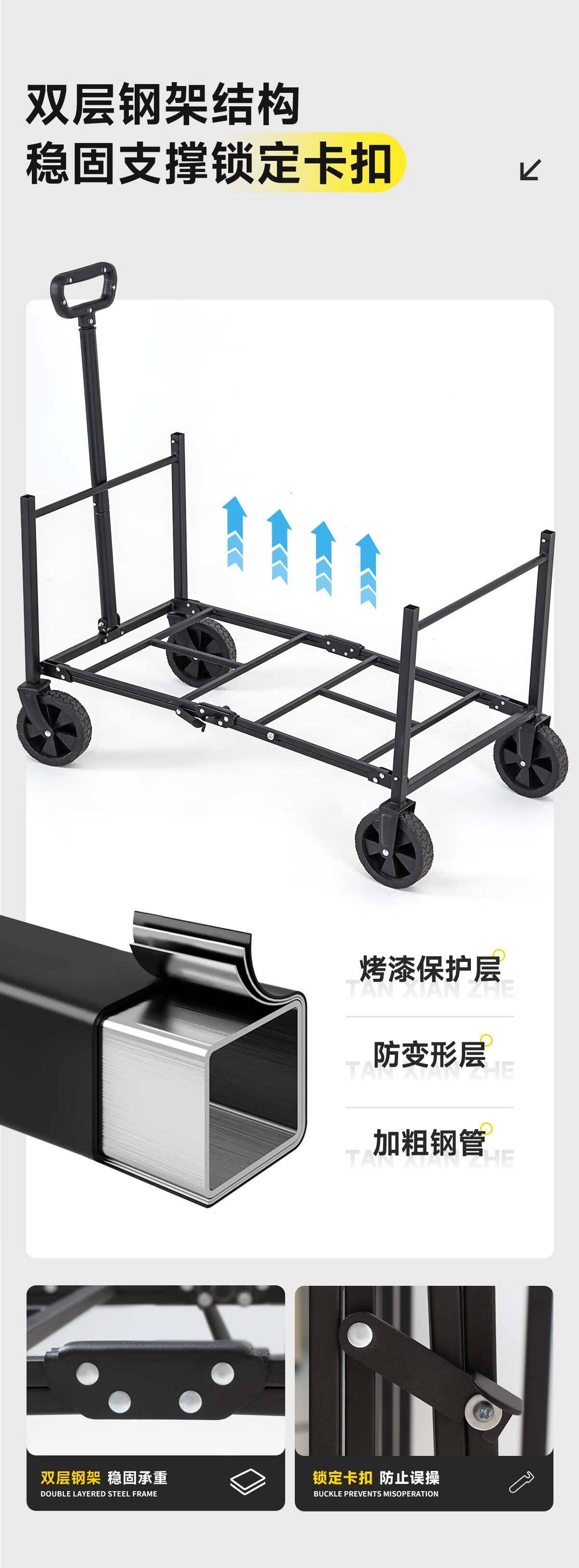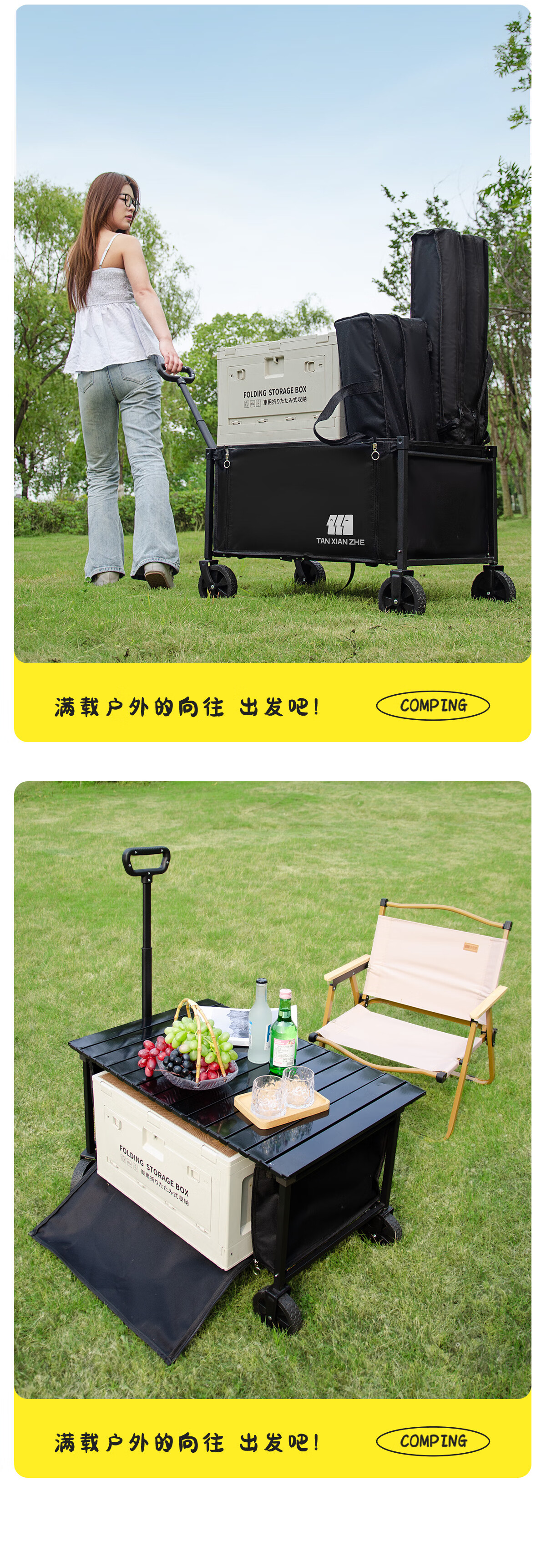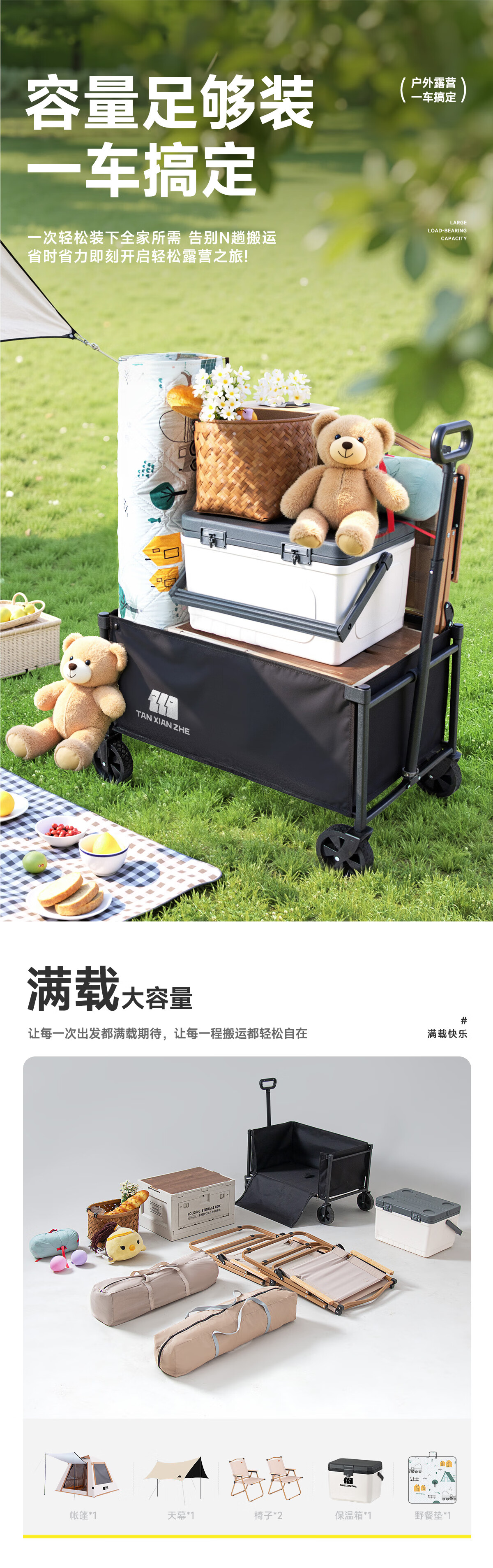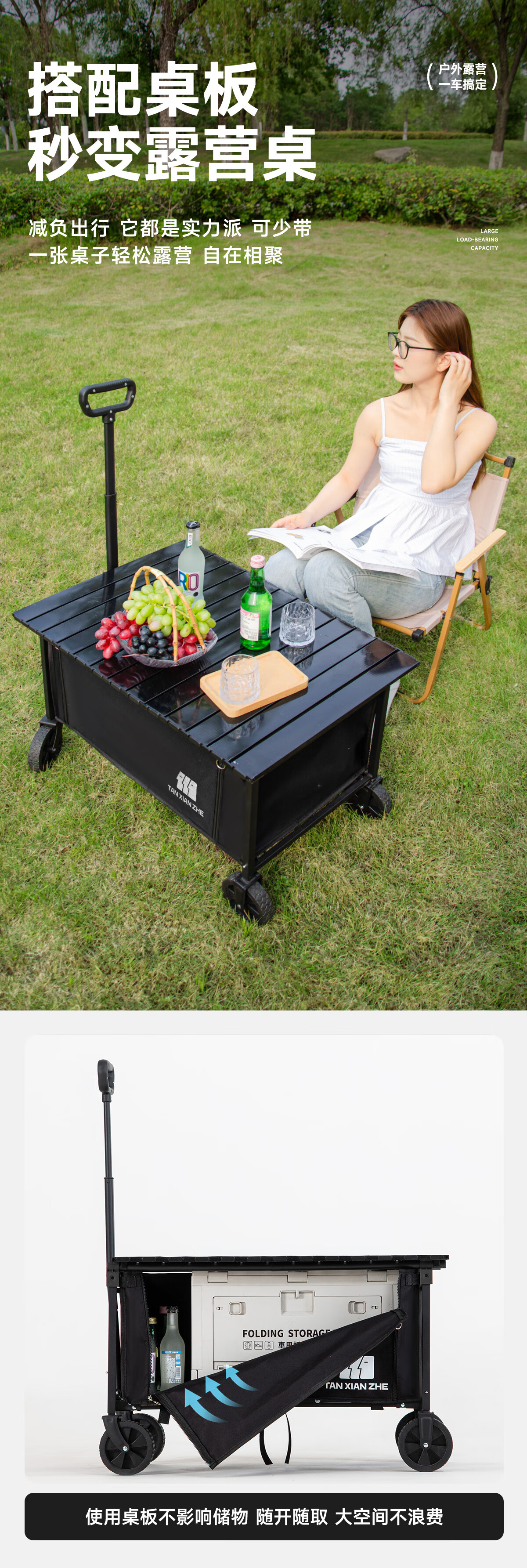 探险者(TAN XIAN ZHE)露营车儿童可躺户外露营推车营地车野营车可折叠桌板野餐车买菜车 曜石黑【静音万向轮+全钢车架】