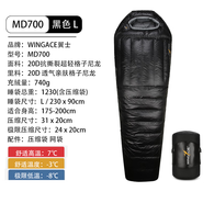 WINGACE翼士羽绒睡袋可拼接木乃伊露营睡袋徒步骑行房车自驾游露营装备 MD700-黑-L
