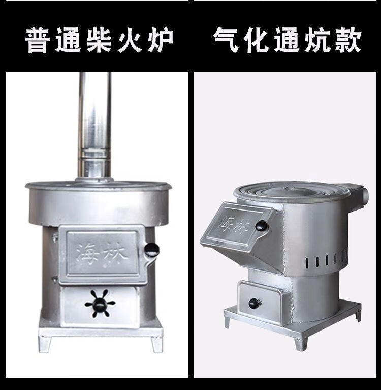 柴火灶家用农村无烟烧木柴新型大锅台室内取暖炉子移动户外多功能 35#新黑圆桶+34炒锅40cm管配件