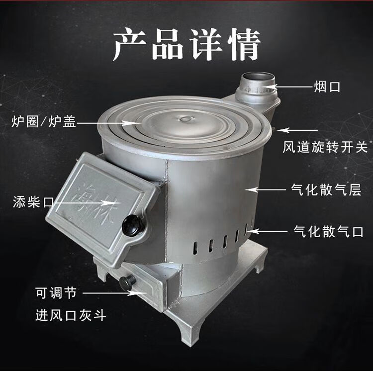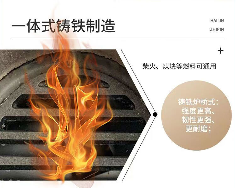 欧乐奇柴火取暖炉冬天家用室内采暖炉农村无烟柴煤两用炭火炉网红烤火炉 【铸铁可通炕】大号特厚款+4米烟筒2弯头+防烫网礼包