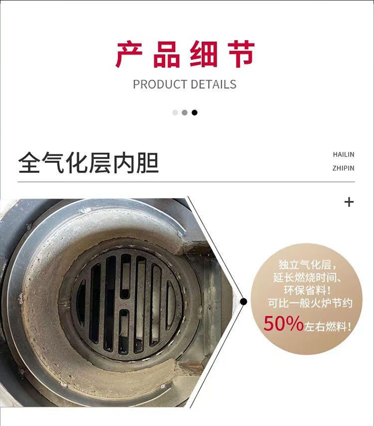 昊燃【10万人+购】加厚气化炉农村家用柴煤两用气化炉高端柴火炉 1.2米加厚不锈钢平转+气化炉