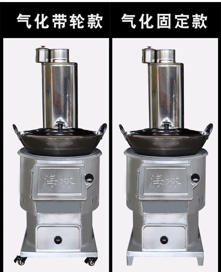 煜尚农村柴火锅大灶家用烧木柴户外室内无烟可移动固定耐用钢板气化炉 方体中号50cm脚轮款不带锅