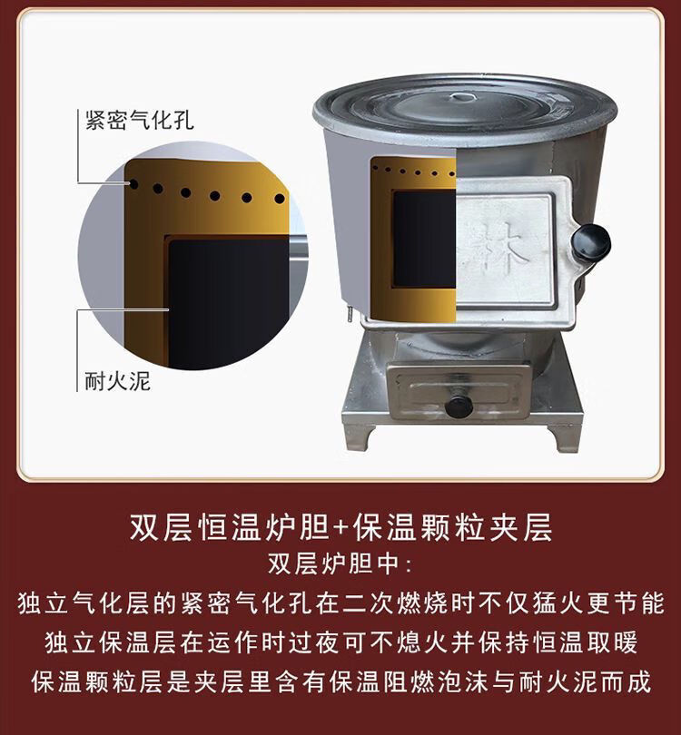 璞灶旺回风炉农村家用取暖柴火炉煤火炉柴煤两用炉多功能烤火桌节能取暖 0.8米钢化玻璃桌面 柴煤两用炉