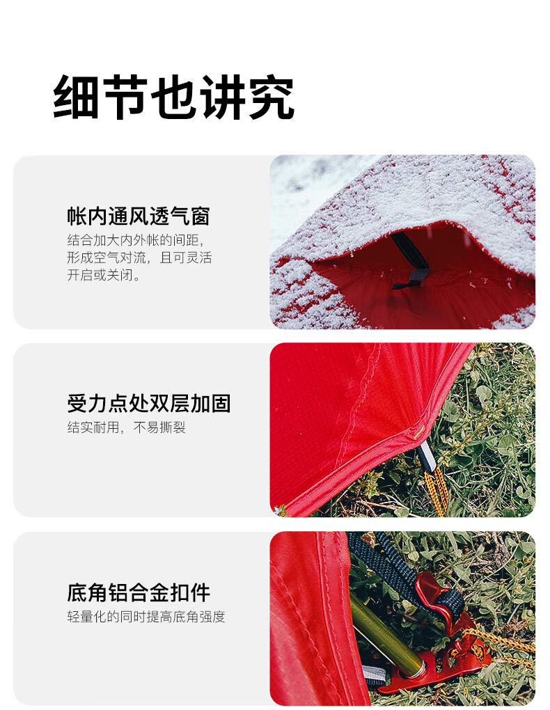 这款帐篷除了小点,没其他的缺点,我27L的包都能横着放下去,希望以后这款能出双人的,再入手一个。