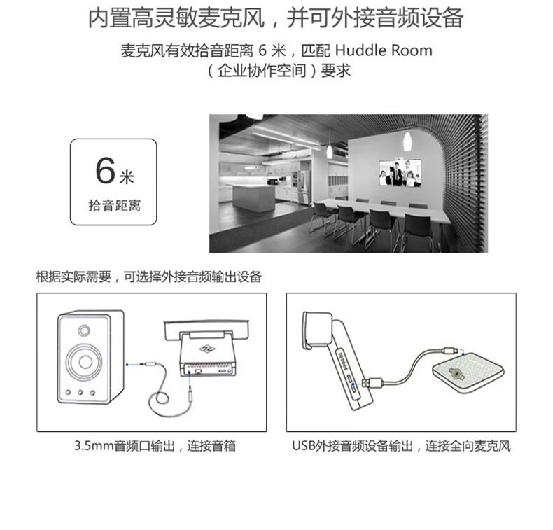 华畅视讯视频会议全向麦克风USB蓝牙无线阵列拾音器ZOOM腾讯会议设备级联一拖二三四5.8G桌面扬声器 HC-M10U(USB有线+无音箱)