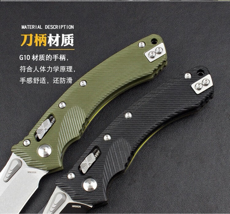 微技术两栖户外军士战术折叠刀G10高硬度D2钢折刀野外生存小刀具 微技术两栖M390折刀【碳纤维柄】 23cm-大于60°【战术快开版】