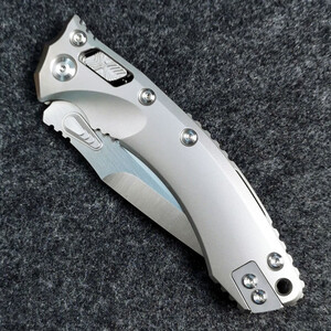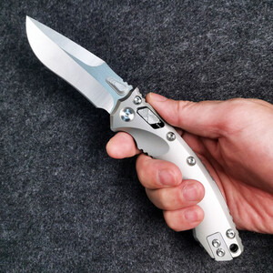 非常精致完美的折叠刀,手柄刀刃细节处理的非常仔细,钛合金手柄的材质摸起来的质感超强,开合顺畅手柄和刀刃配色很搭,刀刃厚度合适,折叠后刀刃适中,刃口磨的极其锋利,是一把无可挑剔折叠刀!