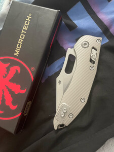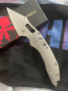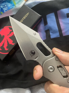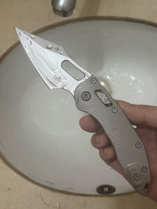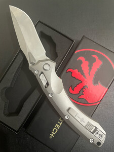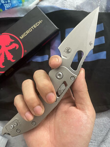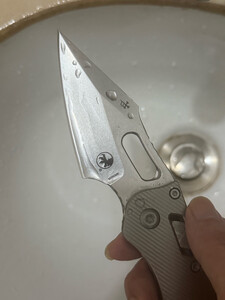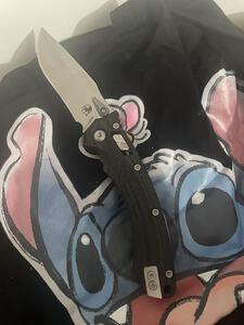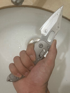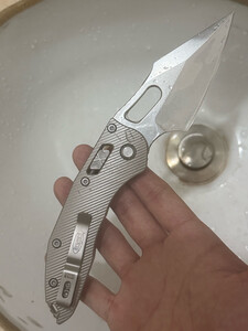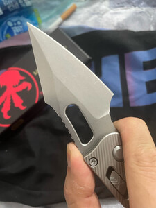 史迪奇的刀形我认为是最帅最有气质的折叠刀,拿在手上气场十足,之前买过普通版的史迪奇,现在发现在钛合金版面前才知道什么是好刀,钛的质感和手感不用多说玩过的都说好,这款用料很足不是很轻的,刀刃材质硬度锋利度毋庸置疑都很强锋利如锥,说实在的这个价位也找不到这么好材质的小刀了,值得入手品味的小刀