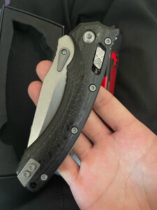手感轻便,手柄打磨很光滑平整没有毛刺,碳纤维手感很独特说不上来的感觉很是不错,刀刃锋利强壮,打开方便,高端产品