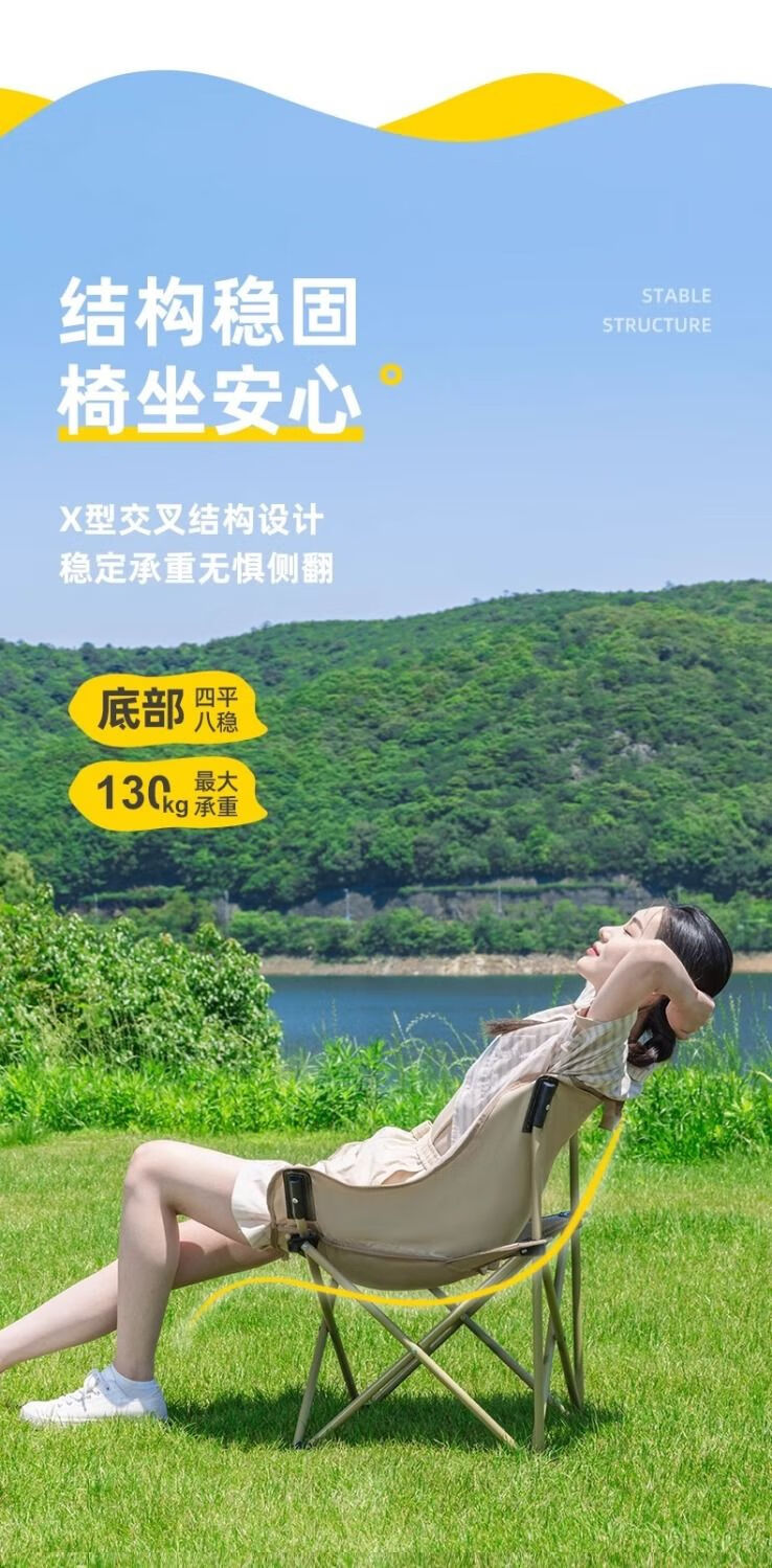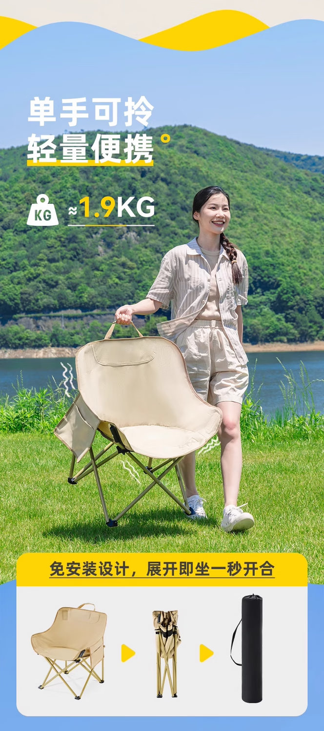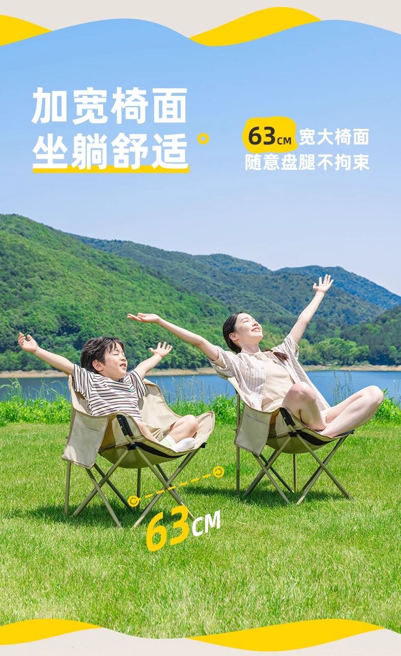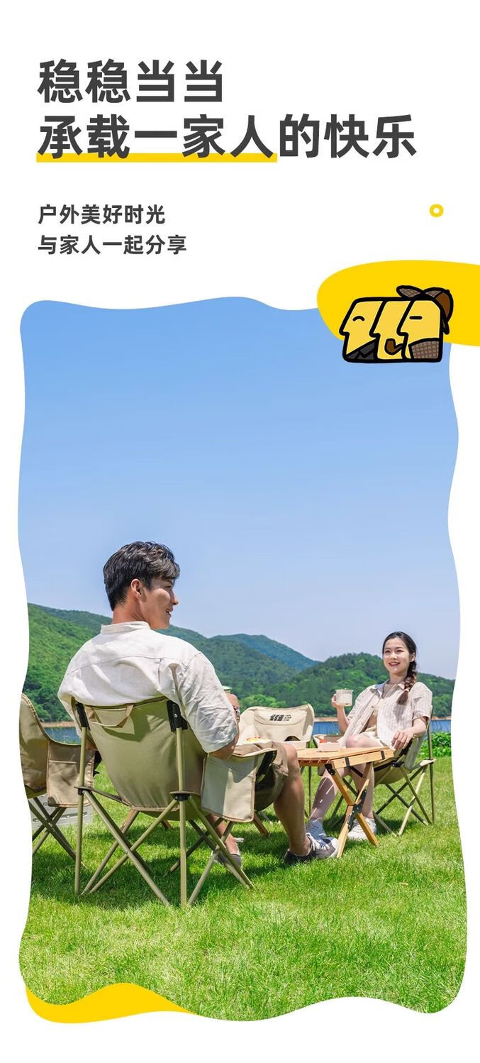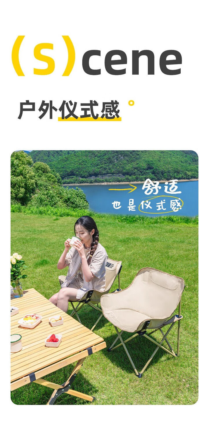 耐博佳户外露营桌椅套装月亮椅折叠桌椅凳子蛋卷桌便携野餐装备 【露营套餐】细沙黄月亮椅五件套