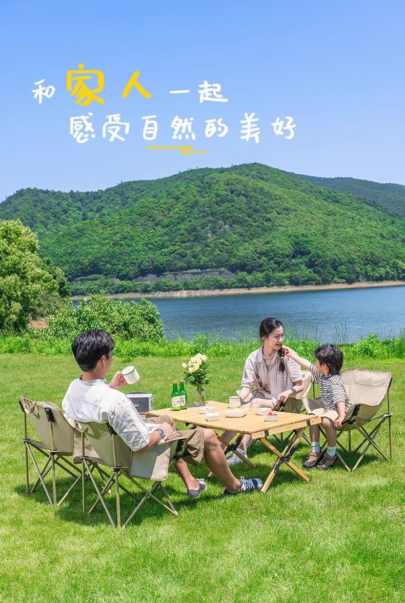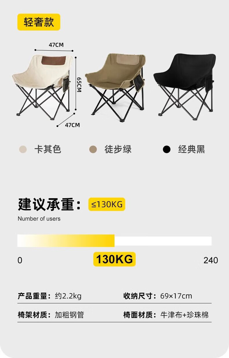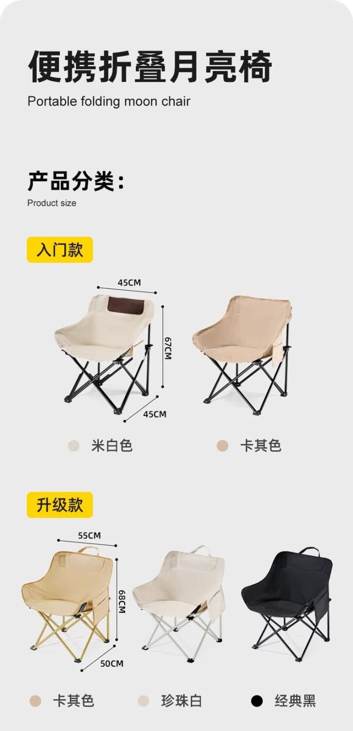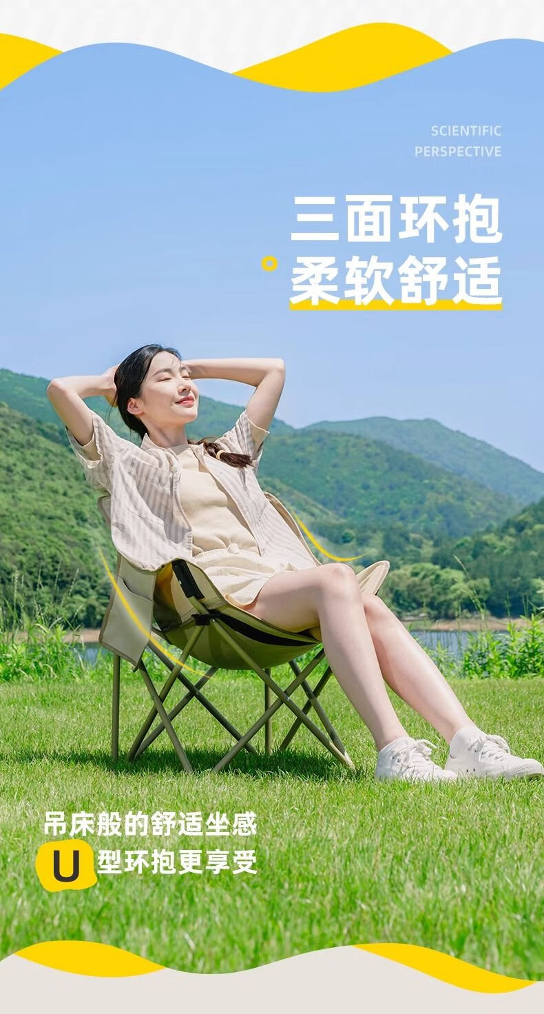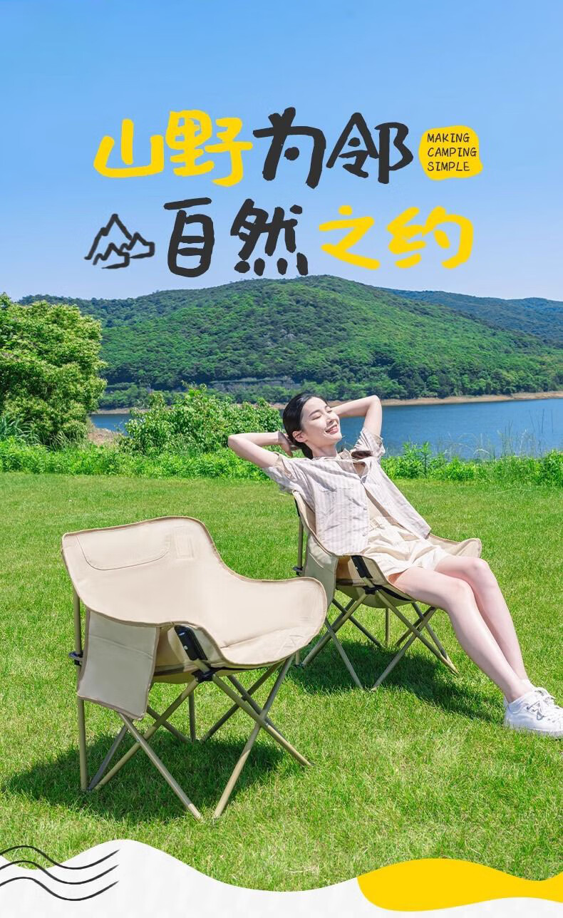 耐博佳户外露营桌椅套装月亮椅折叠桌椅凳子蛋卷桌便携野餐装备 【露营套餐】细沙黄月亮椅五件套