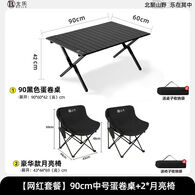 北乐户外露营折叠桌椅套装便携式蛋卷桌野营野炊野餐桌椅子一桌四椅 90CM蛋卷桌黑色+月亮椅*2