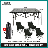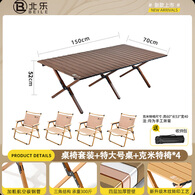 北乐户外便携式露营蛋卷桌可折叠桌椅子野餐摆摊桌椅野营野炊装备套装 胡桃木色超大号【150cm】+椅子*4
