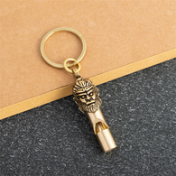 黄铜户外救生口哨子竹节钥匙扣挂件儿童比赛高音哨子登山训练装饰 【大圣口哨】+大铜圈
