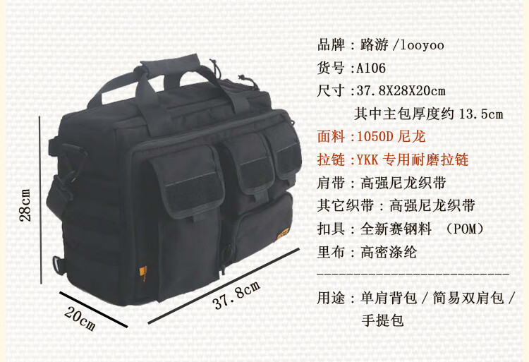 主包尺寸:37.8X28X13.5CM(宽X高X厚)