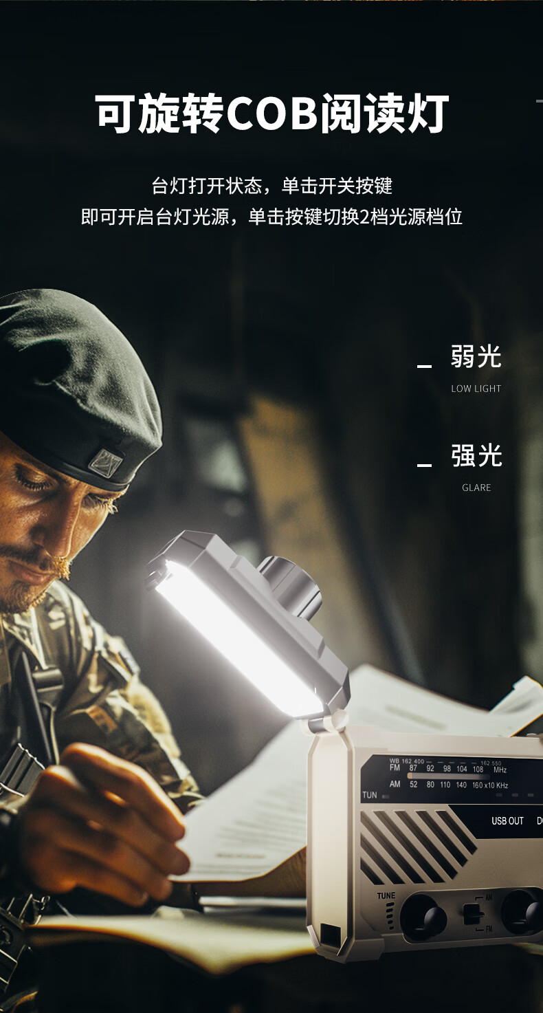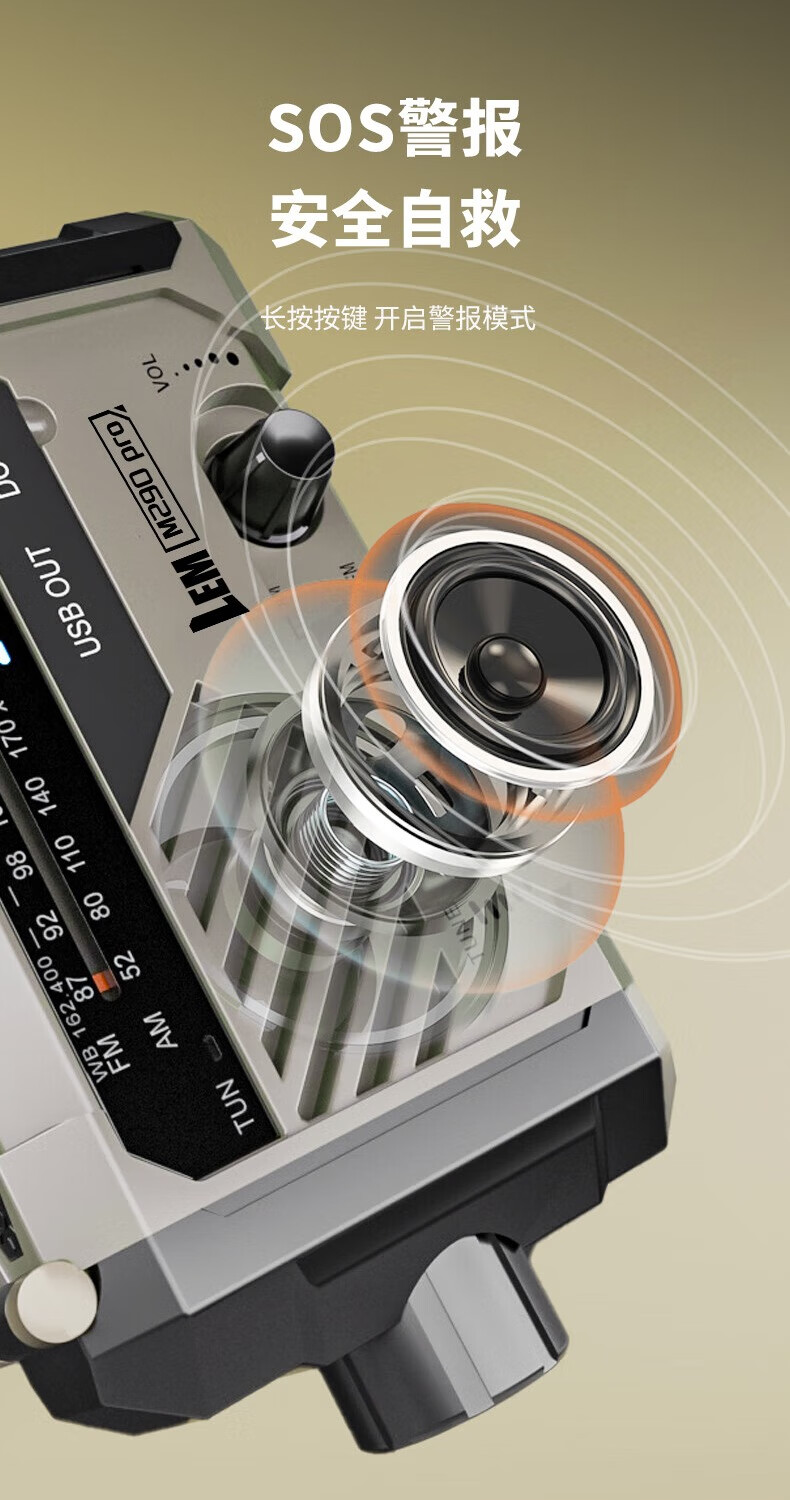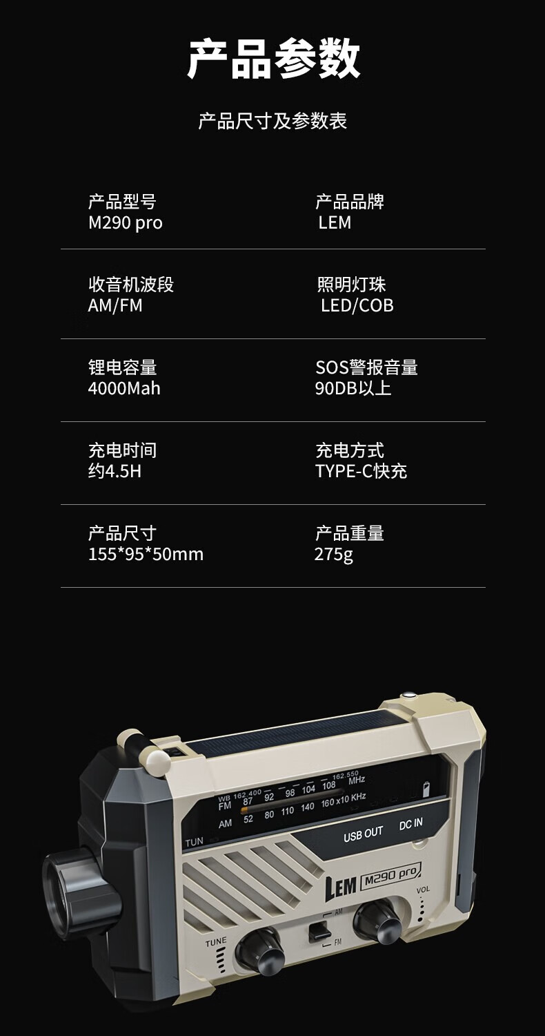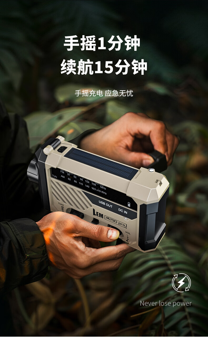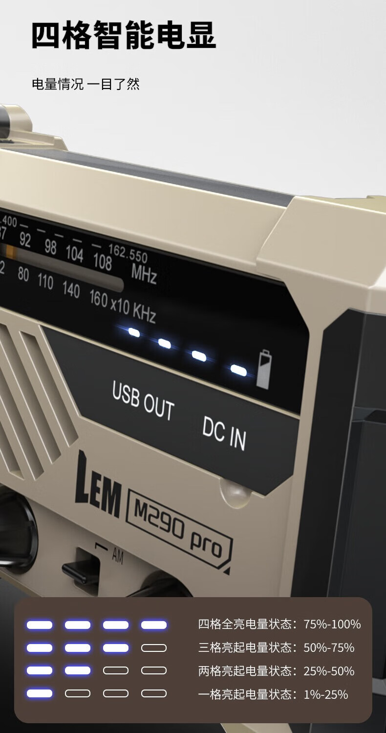 LEM手摇手电筒收音机太阳能发电机应急灾备末日生存装备太阳能充电 M290pro升级版沙漠色/4000毫安