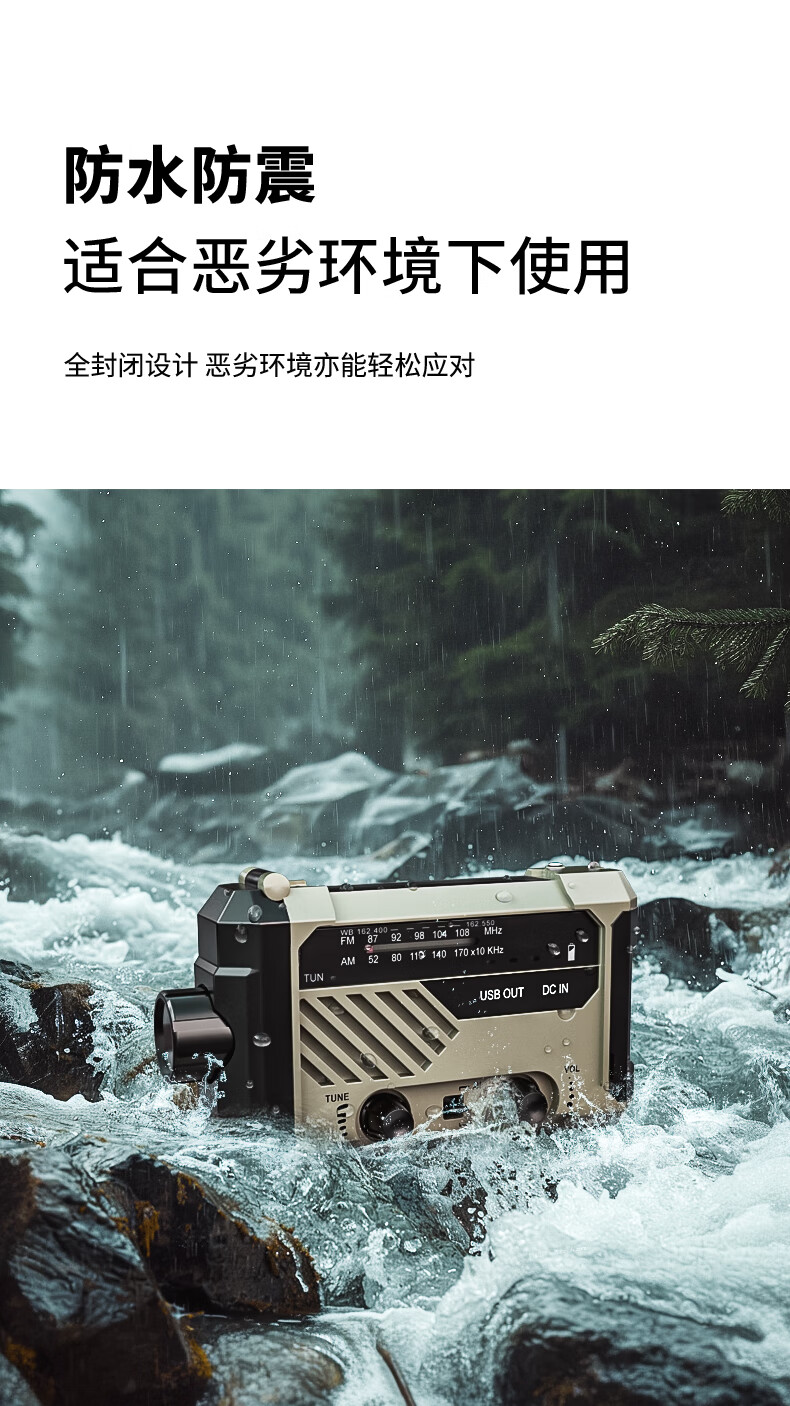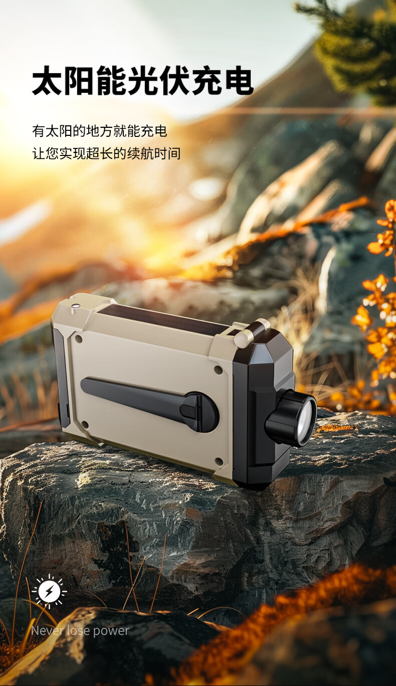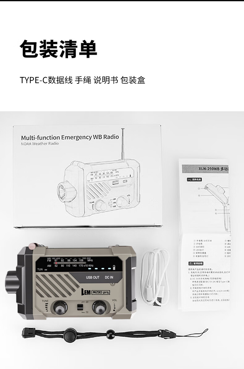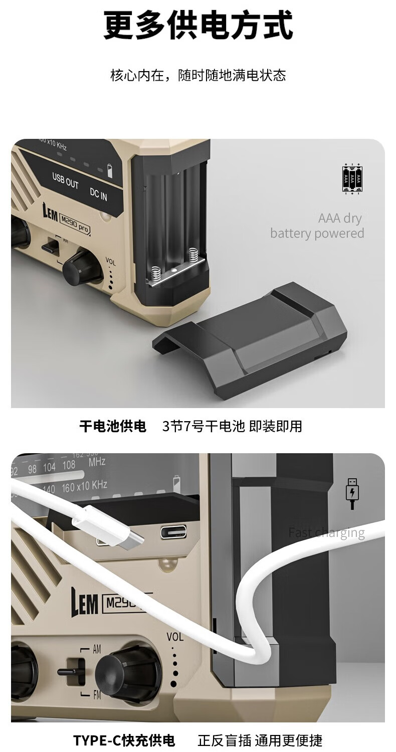 LEM手摇手电筒收音机太阳能发电机应急灾备末日生存装备太阳能充电 M290pro升级版沙漠色/4000毫安