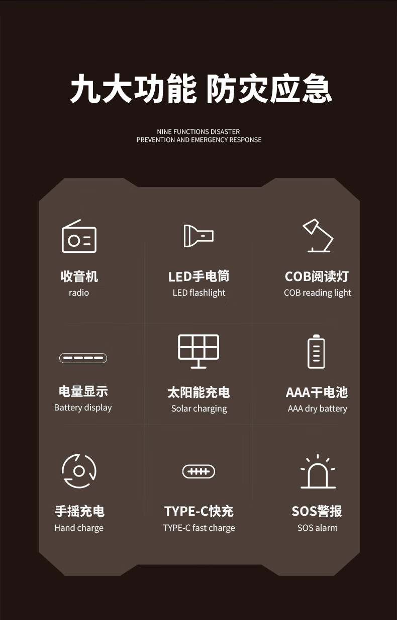 12000毫安防灾手摇发电收音机应急照明手电筒太阳能多功能发电机 墨绿色12000毫安