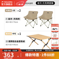 挪客户外折叠椅速开露营月亮椅子野餐便携沙滩钓鱼椅凳子懒人装备 2人桌椅装-超大款卡其*2+铝桌