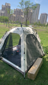 帐篷超级好搭,两个人十分钟就能搭完,通风很棒,宝宝在帐篷里睡觉也不觉得很热,超级好评 适用场景:适合一家四口出行游玩 容纳人数:3-4 人 透气效果:四面可开窗,通风效果好