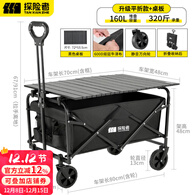 探险者露营车户外折叠推车营地车快递摆摊野餐车大容量野营拖车 黑色升级款160L【万向静音轮+桌板】