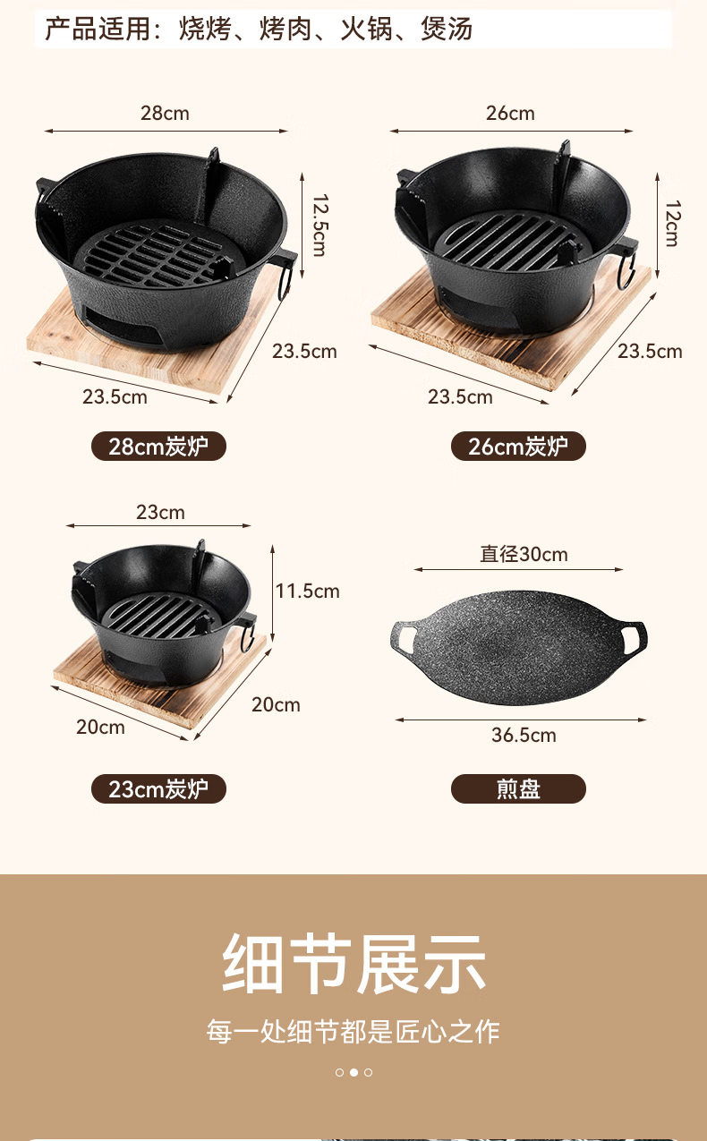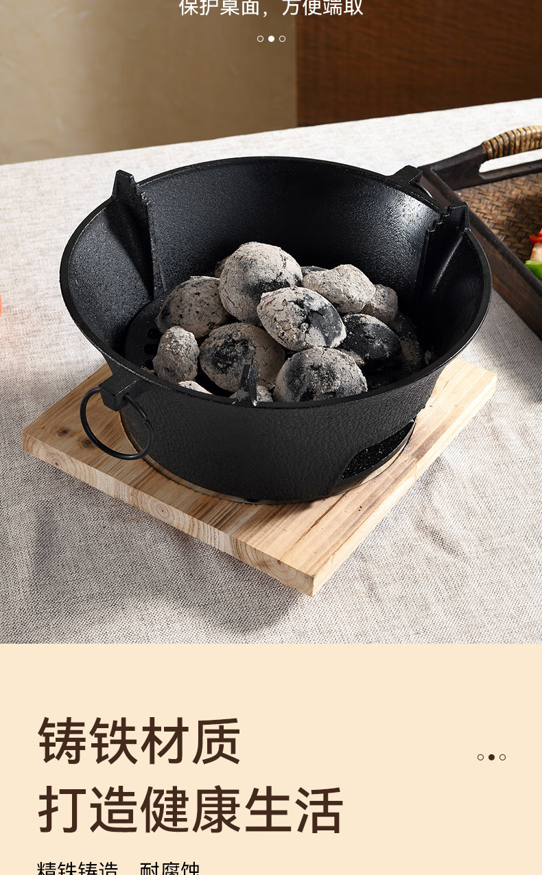 oeny铸铁炭炉带脚防烫炉烤火炉子烧炭炉家用碳炉木炭炉煮茶取暖烧烤炉 新款炉子 特大L 28cm