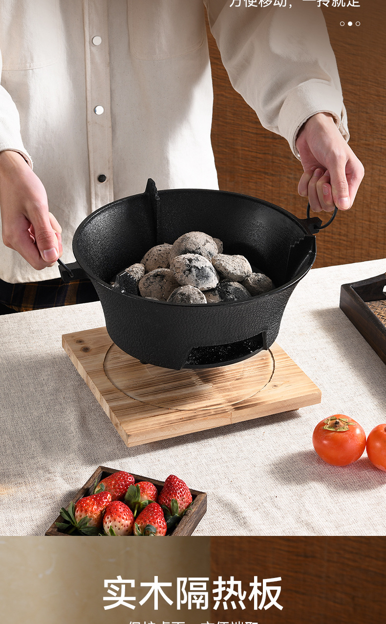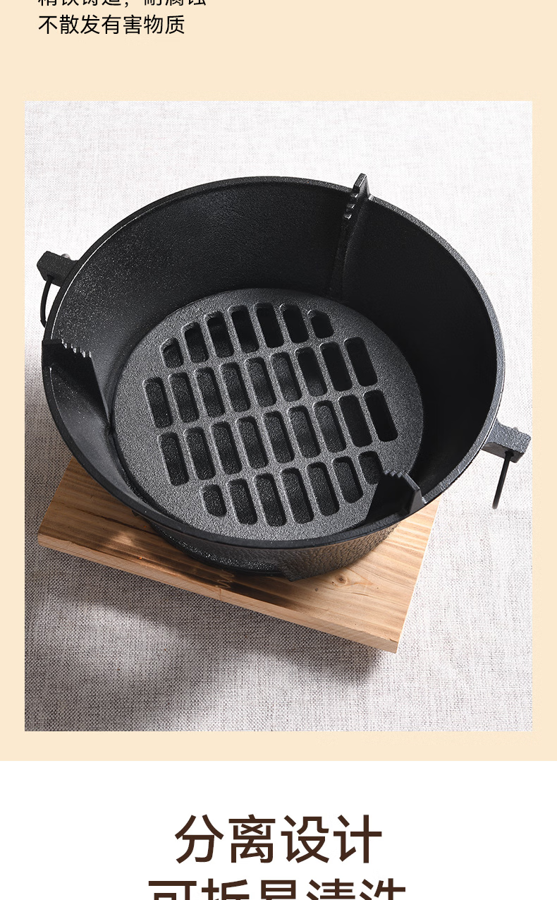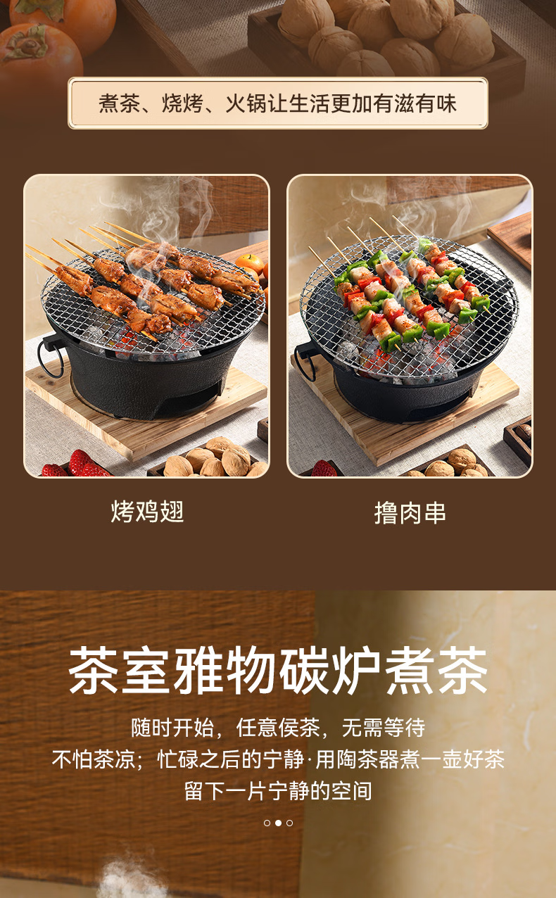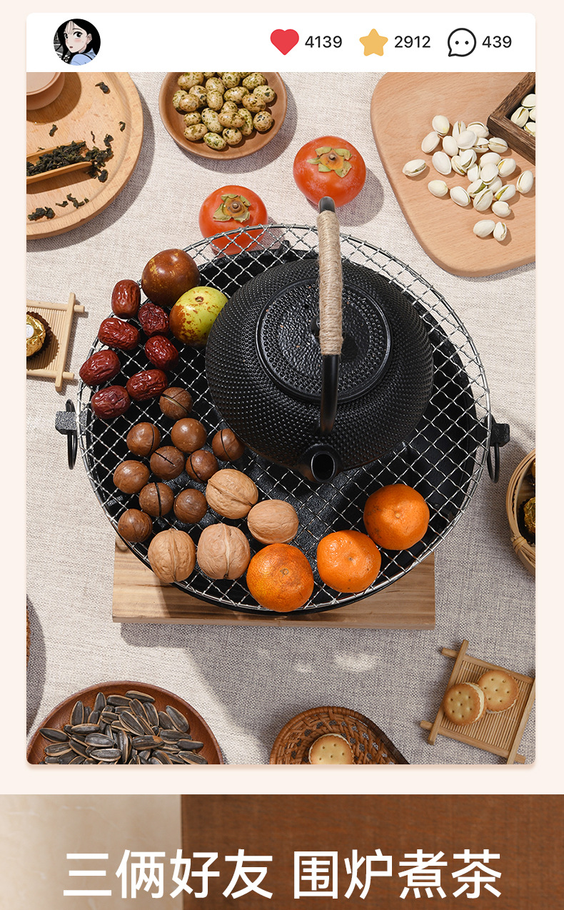 映棠围炉煮茶家用户外铸铁烤炉烧烤室内取暖炉烧烤火盆炉煮茶炉碳炉 加大号28cm(含烤网+隔热底座)