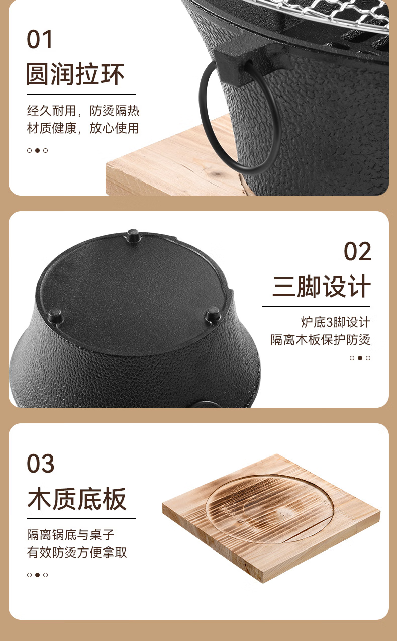 铸铁炭炉室内取暖老式炉子火炉生铁户外木炭柴火灶围炉煮茶烧碳 加高款25CM炭炉+不锈钢烤网