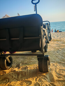 露营车折叠打开都非常方便,中间有个手提拉绳,一拉就聚拢了。我没选择黑色就是因为黑色不耐脏,这个颜色比较经典。提个建议,改善包装材料,本来就是比较重的车子,路途搬运哪有可能一点都不损伤。我这个车的油漆就有磕碰伤,虽然商家积极回应,并作出解决办法。