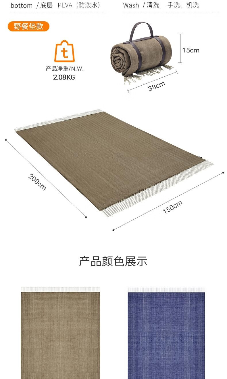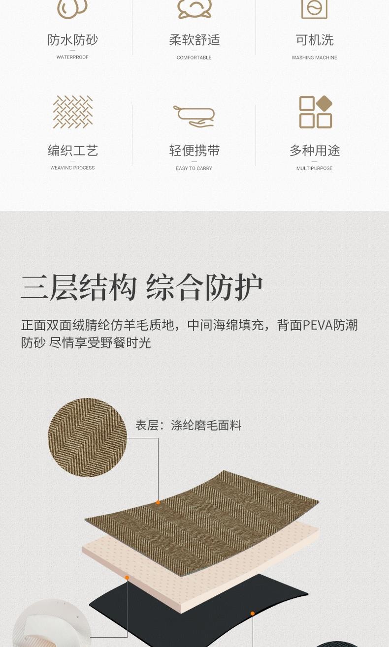 北牧歌 便携野餐垫防潮垫加厚户外露营地垫野营草坪垫子可机洗超声波 海盐芝士2*2米(4层防潮耐磨)