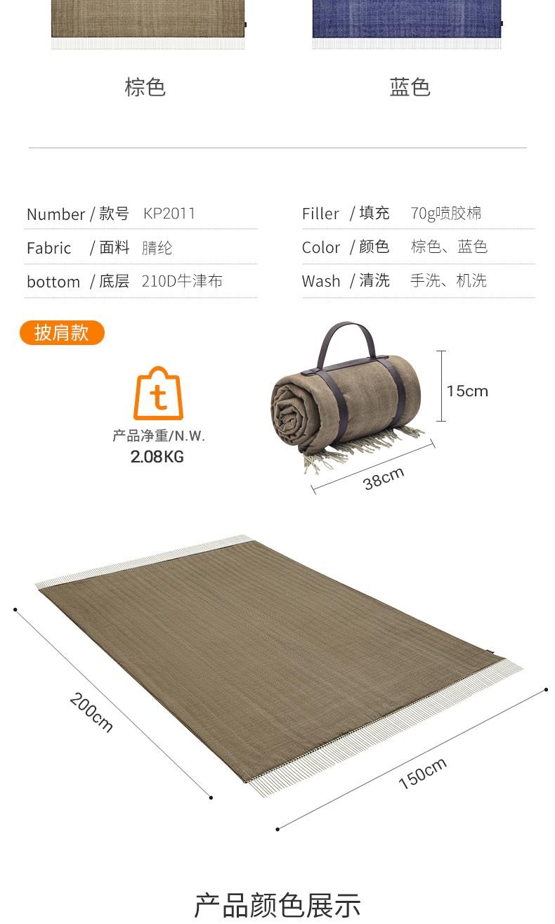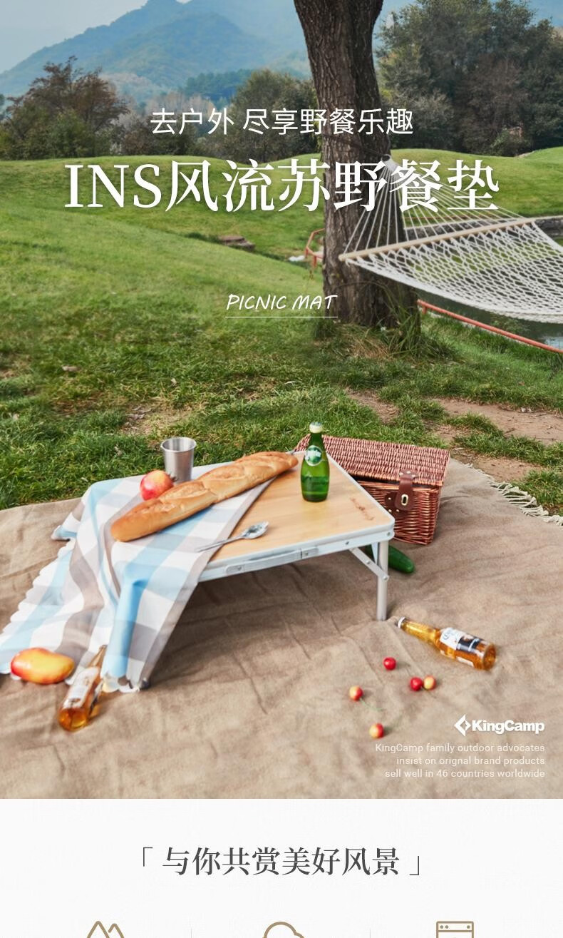 KingCamp户外野餐垫ins风加厚野炊地垫便携式防潮垫春游垫露营地垫野餐布 【披肩款】蓝色