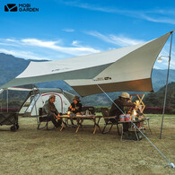前段时间心血来潮想和朋友去露营,在网上挑了好久,最终入手了这款天幕,事实证明我的选择真的没错! 收到货后,包装完好无损,打开一看,天幕的材质真的很让我惊喜,摸起来厚实又有质感,缝线也很细密,没有任何线头,细节处理得相当到位,感觉特别耐用。 搭建的时候本来还担心会很麻烦,没想到按照说明书,和朋友两个人轻轻松松就搭好了,过程特别顺利。它的配件很齐全,地钉又粗又结实,轻松就能打进土里,防风绳也够长够牢固。搭好后,整个天幕稳稳当当的,抗风效果超棒。我们去露营那天风有点大,旁边好几家的天幕都被吹得摇摇晃晃,我们的却纹丝不动,安全感拉满!