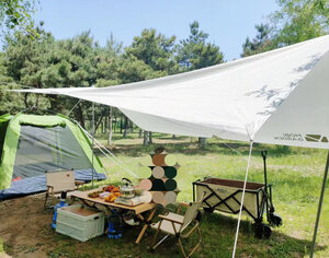 质量很不错、这个价钱买到这么划算的天幕、 非常意、 第二天就拿去使用了、 搭建不困难、 而且颜值很高、 晨雾白很好看、 值得推荐购买