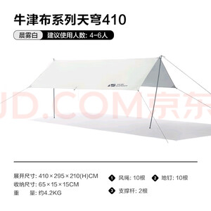牧高笛(MOBIGARDEN)天幕 户外露营防雨遮阳防晒牛津布方形天幕410 NX21661026 晨雾白