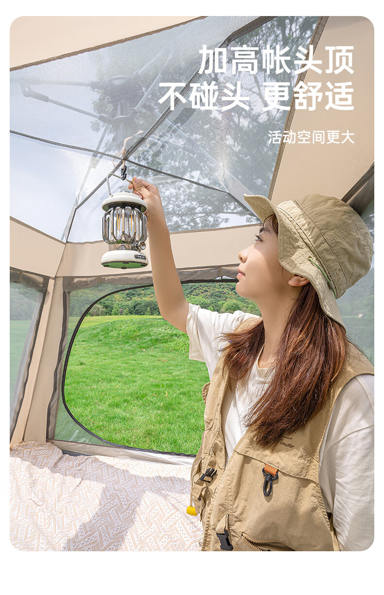 产品功能;一提打开,一按收起,非常方便,超赞的帐篷,外观材质,非常漂亮的帐篷,等天气好就去露营,感觉随便拍就能出大方,商品品质,质量可以,对比了很多家,就这家性价比最高