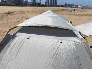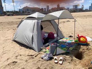 收纳方便,女生也能轻松收纳,材质也轻便,带去海边防晒露营非常合适,里面空间大,四面通透还有纱帘防蚊虫,很不错哦!