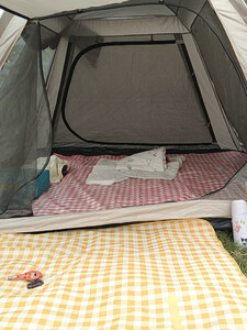 第一次出去露营,对购买装备没有经验,就找了评价评分好的一家店买了帐篷。买的时候抱着买来先过渡一下的想法,到手使用后真的是觉得非常值得,可以用很久,对店铺好感度也非常好。首先是帐篷都没有什么异味,我们是帐篷刚到驿站,取了就出发的,当天晚上就用了,没有清洗都可以直接用。然后就是帐篷的颜值真的很高,舒适度也很好,更惊喜的是我们当天晚上还下了小雨,晚上睡的时候担心漏水进来,但是一直到雨停都没有漏雨,睡醒之后去看真的只是外壁有水珠,里面是干燥的。睡袋里面也超级软,设计合理,安全感满满的。
