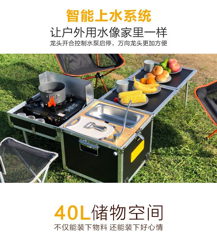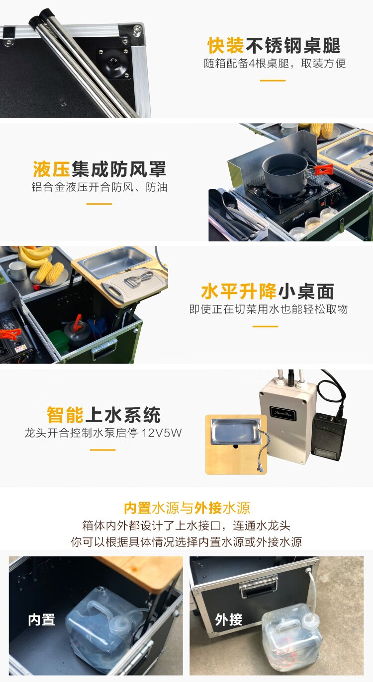 五阆【现货速发】户外移动厨房车载多功能小厨箱露营野炊炉烧烤折叠桌 小厨箱【标准版全能套装】