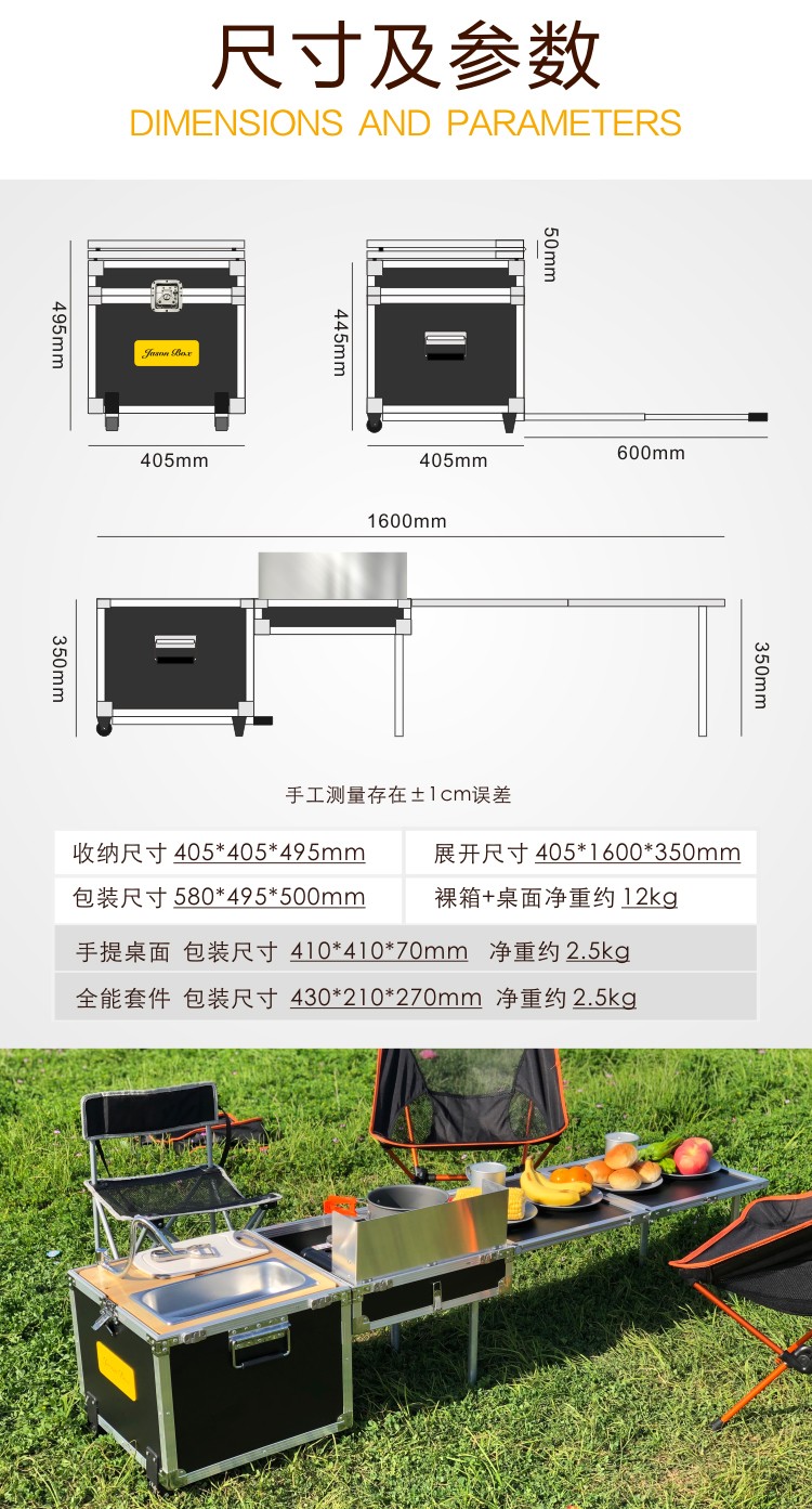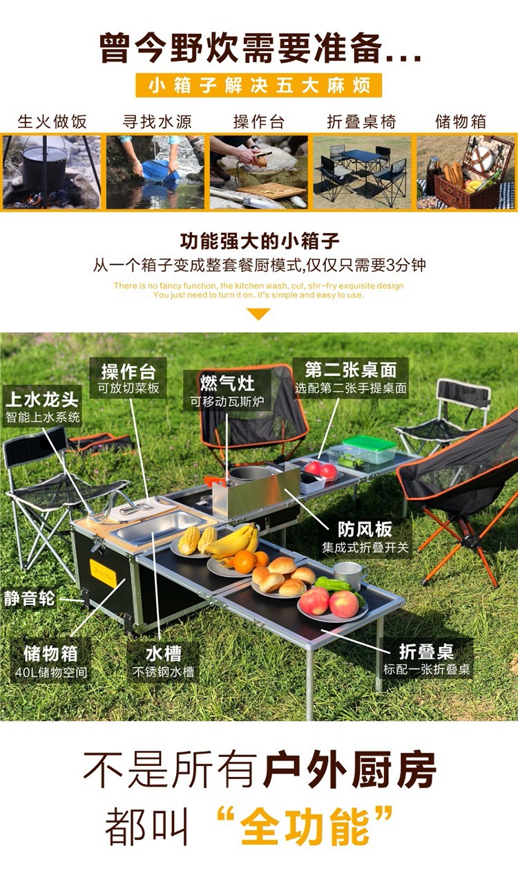 户外集收纳箱、桌、灶台于一体的体积最小、重量最轻的天花板,价格对得起这个宝贝,解决了左一个箱子、右一个桌子搬来搬去的麻烦,值得拥有。