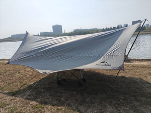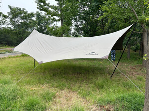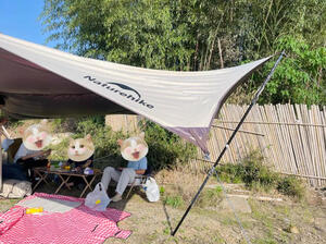 第一次买挪客的东西,说实话价格有点劝退。拿到手以后才知道一分钱一分货,黑胶的涂层很厚实,撑杆非常厚重结实。就连风绳扣的质量都很好,天幕下边非常凉爽,比我以前用的牌子好多了