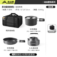 北山狼 户外野餐包 露营炊具烧烤便携大容量防水收纳包 复古黑+B3套锅(3件套)