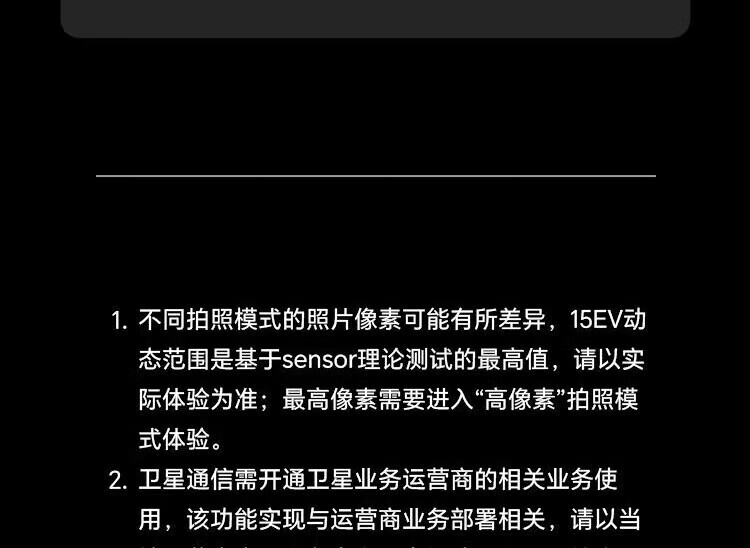 AI大模型,卫星通话,LTPO屏幕,高频PWM调光,潜望式长焦,防水防尘,无线充电,NFC,红外遥控,大底主摄