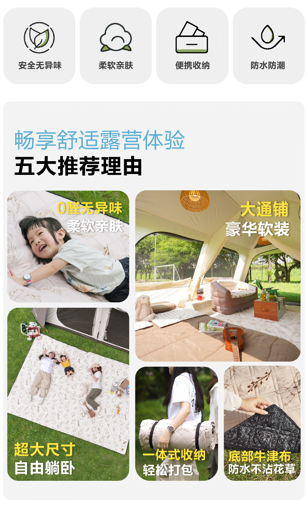vidalido维达利多户外露营别墅野餐垫防水防潮加厚折叠垫子便携超大爬行垫 印第安印花-适配小号别墅310*200cm