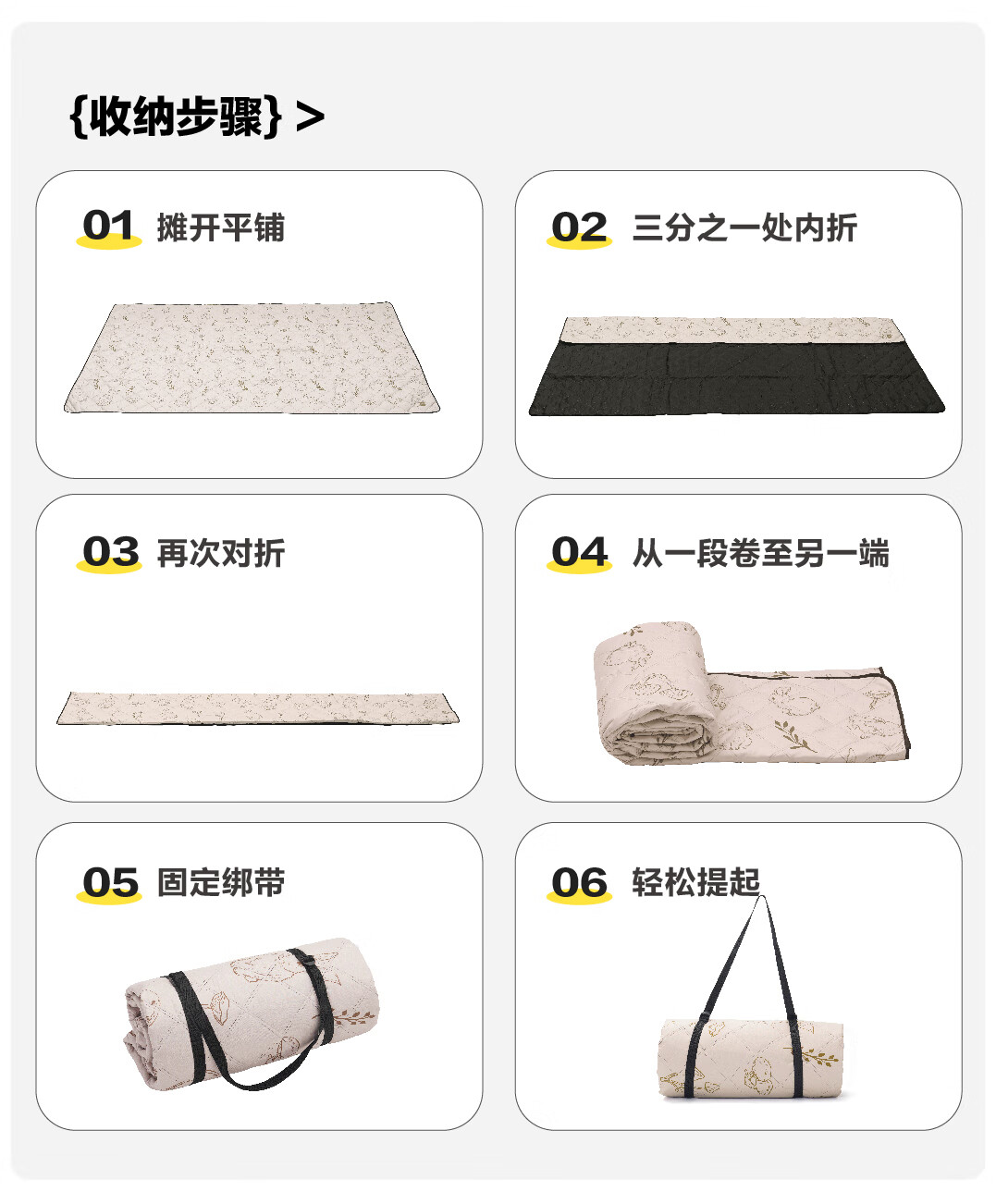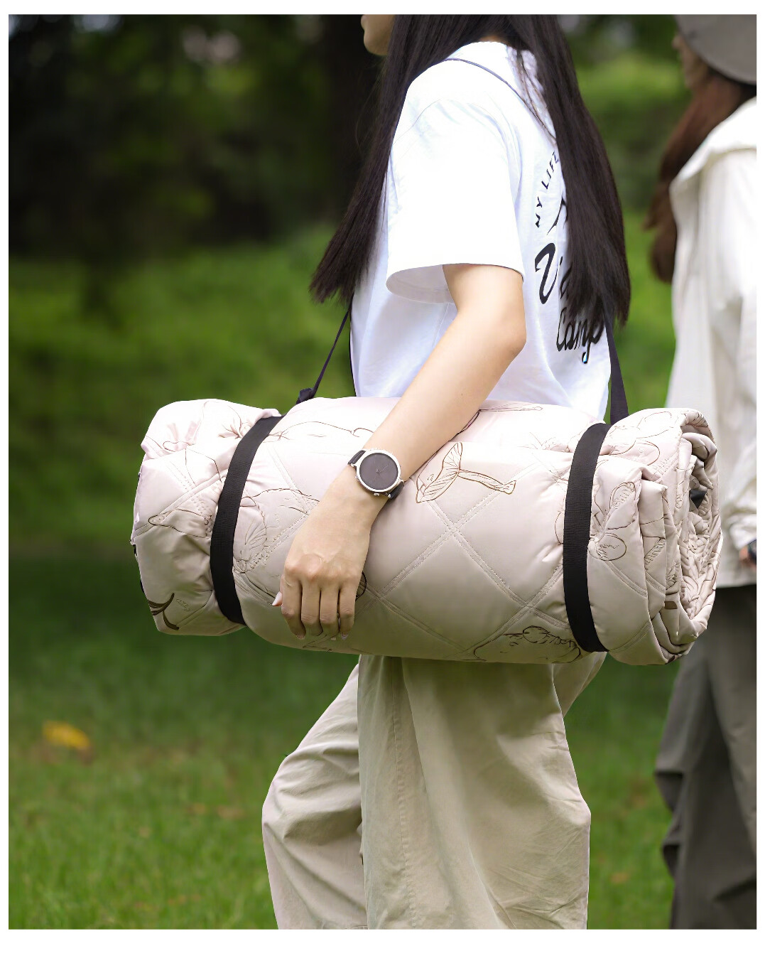 户外露营折叠便携坐垫公园草坪防潮垫徒步登山地垫椅子座垫野餐垫 黑色图案坐垫