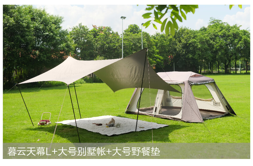 何佳功新燕尾天幕户外露营懒人免安装加厚黑胶防晒遮阳防雨速搭天幕 速搭型12㎡银胶天幕3.3*3.6米2-4人(1