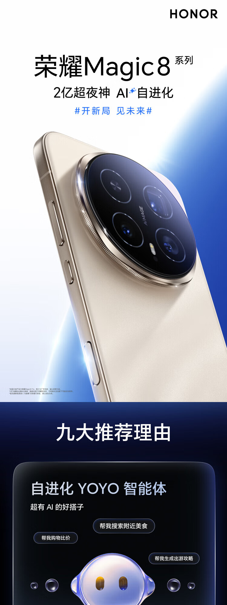 荣耀【分期免息】Magic 8 新品5G手机 第五代骁龙8至尊版 Magic8雪域白 12GB+256GB 官方标配+原封未激活+全国联保