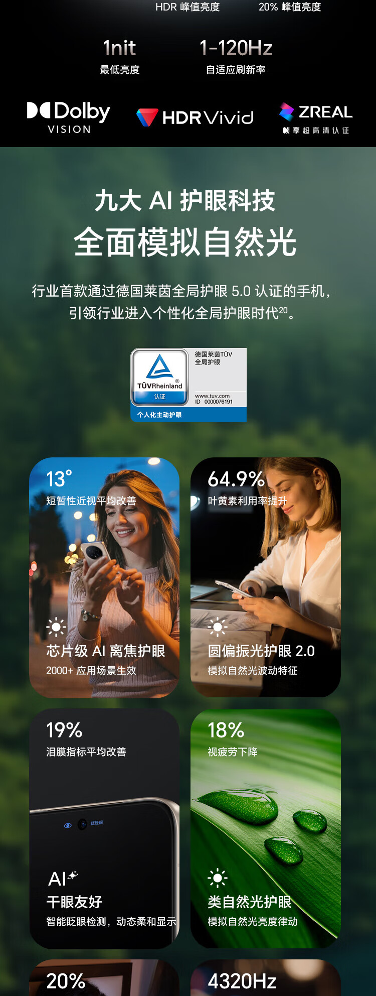 LTPO屏幕;德国莱茵护眼;高频PWM调光;巨犀玻璃